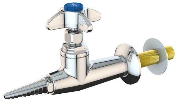 The WaterSaver Faucet Co.'s L4870F-225WSA fine control needle valve assembly is a panel-mounted system designed for precise flow regulation of laboratory gases such as nitrogen, oxygen, helium and hydrogen. The valve is specially cleaned, lubricated and packaged for use with high purity gases at no extra charge. Needle valves are for use with gases only. This valve is designed for installation when the installer has access behind the panel or drywall. For a version with a 3/8" NPT female inlet designed for installation when there is no access behind the wall see item # L4870FT-325.
