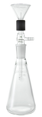The Morris NMR tube cleaner is an inexpensive, durable apparatus which will clean NMR tubes with as little as 10 mL of solvent in one easy operation. This cleaner does not require a stopper on the NMR tube and does not have a fragile side arm like some competing products. The complete item is supplied with a NMR tube washer, adapter, Erlenmeyer flask and instructions for use. Individual components are also available. This item uses a CG-1549 filtering flask.