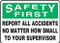 OSHA Style Safety First Sign: Report All Accidents No Matter How Small To Your Supervisor