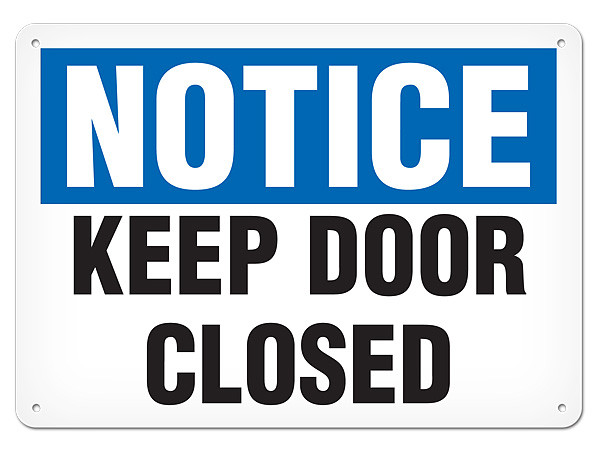 These signs feature an OSHA NOTICE header and the words "Keep Door Closed" to get their point across. Use them to restrict admittance or access to a particular area, alert employees to potential hazards, or simply provide information.