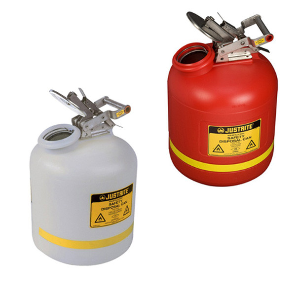 Justrite Disposal Safety Cans, Polyethylene, 5 Gallon, Red or White