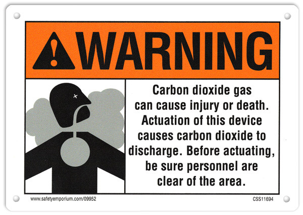 CO2 System Signs, WARNING - Carbon dioxide gas can cause injury or death. Actuation of this device causes...