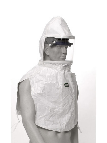 The Bullard 20TICS hood can be used with airline systems or Powered Air Purifying Respirator (PAPR) blower assemblies. One of 8 available styles in the CC20 series, this hood is made of tough, durable Tychem QC (Tychem coated with polyethylene) and provides excellent splash protection against many acids, bases and other liquid chemicals. For protection from a wider variety of chemicals select the 20SIC hood instead.