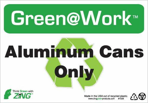 Zing Green@Work™ Aluminum Cans Only Signs w/Image, 10" h x 14" w, Vinyl Self-Adhesive